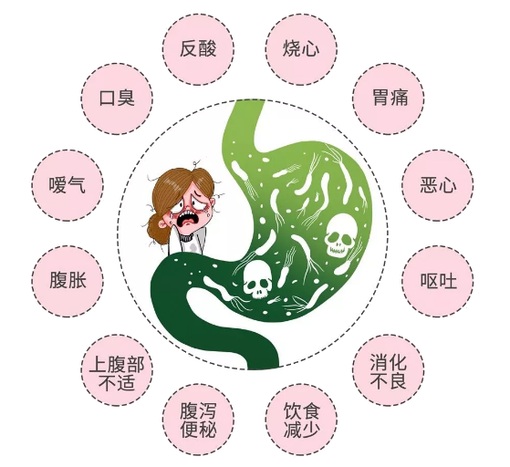 要注意的是,并非每个感染者都会有症状,大多数人都浑然不知。但患有胃病的人大多数是阳性。