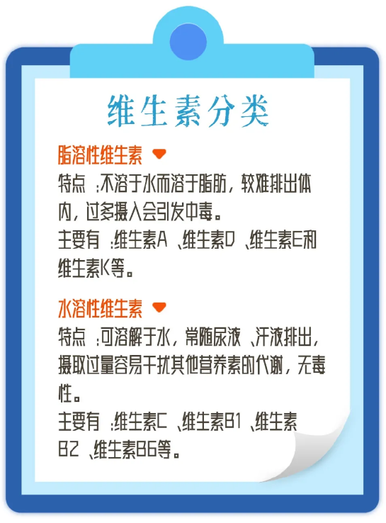 维生素种类非常多,按照溶解性可分为脂溶性维生素和水溶性维生素两大类。