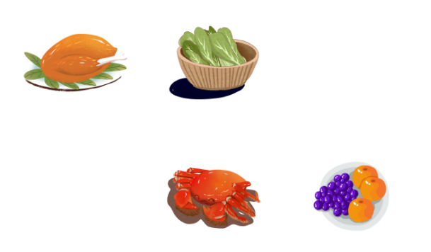 鸭肉、兔肉、蛙肉、鱼、鲍鱼、螃蟹、蛤蜊、牡蛎肉、蜗牛、螺蛳、蚬肉、章鱼