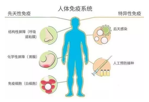 人一生下来就有的,包括我们人体的机械性防御功能,比如皮肤能够抵抗病原微生物的侵扰、胃酸能直接杀死细菌等。