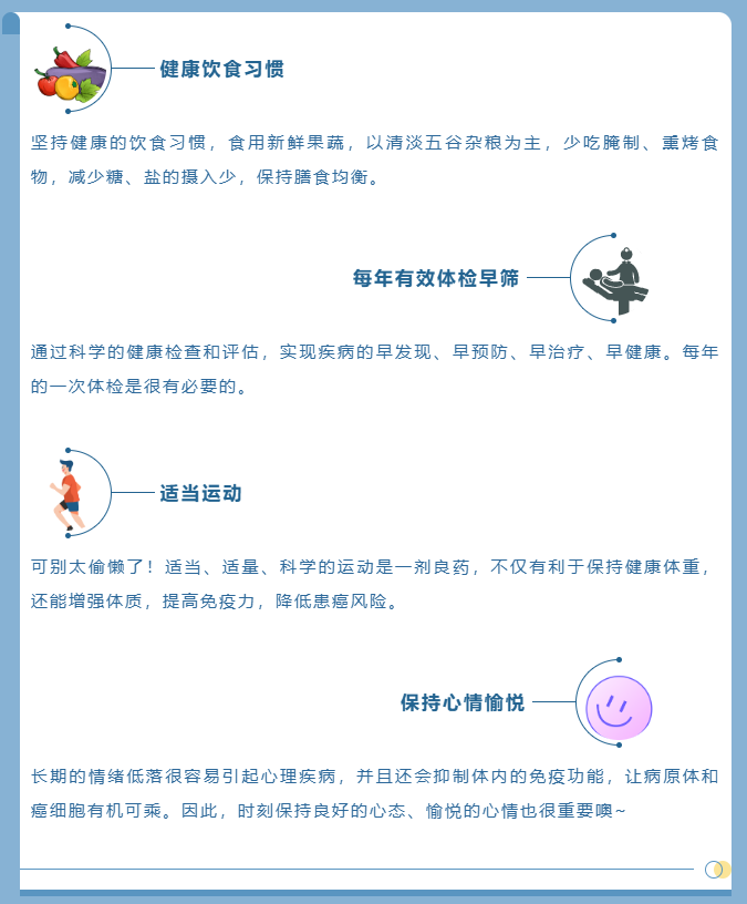 其实 1/3 的癌症都是有治愈希望的,只要初期就发现,树立定期体检意识非常重要,尤其是高危人群,要注重癌症筛查,早发现、早诊治。