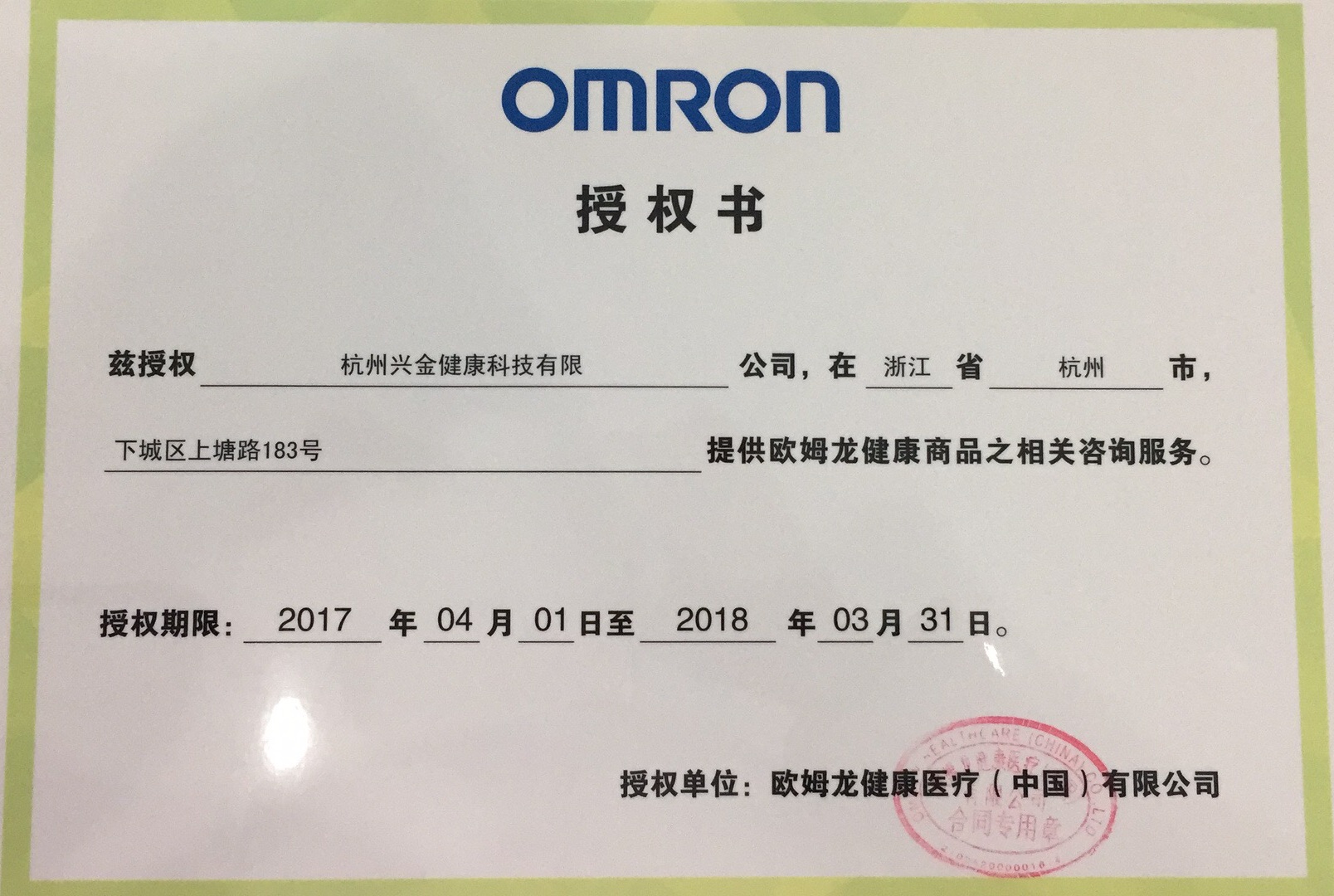 杭州兴金健康科技有限公司是一家专门从事家用医疗器械经营、开发以及国际技术合作的专业公司,公司成立以来,一直承接了欧姆龙健康医疗浙江的销售业务,及欧姆龙医疗健康产品的售后服务接待中心。