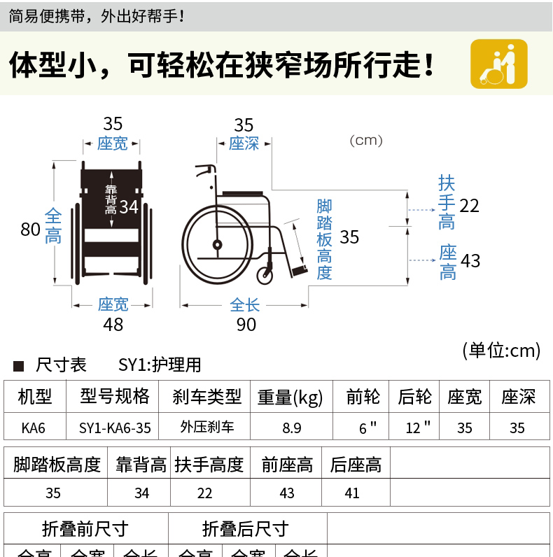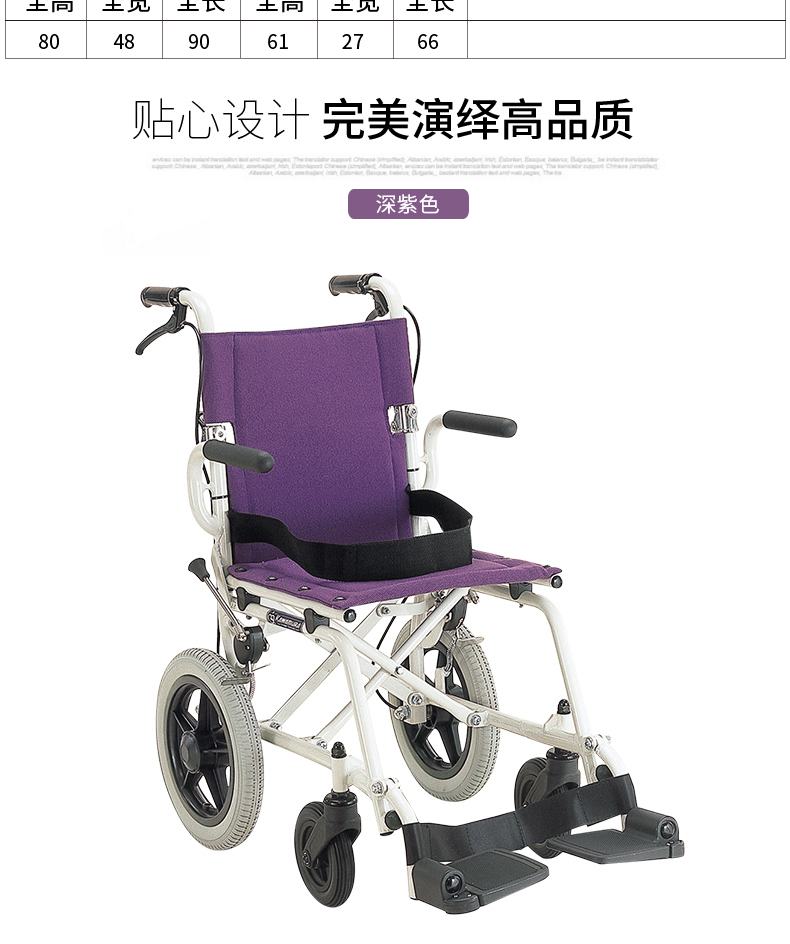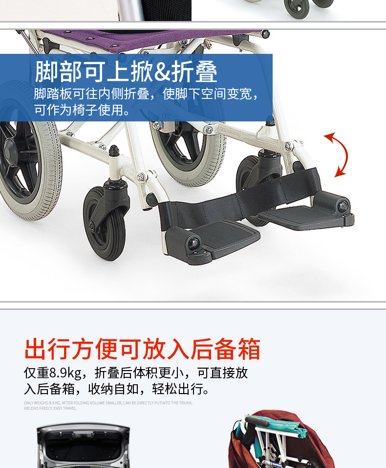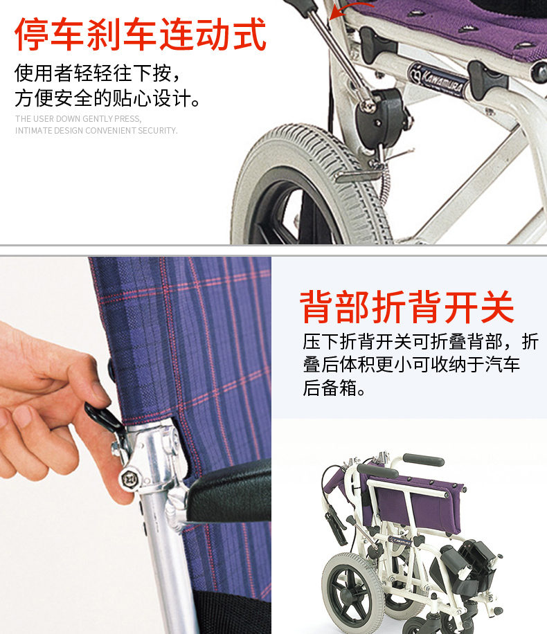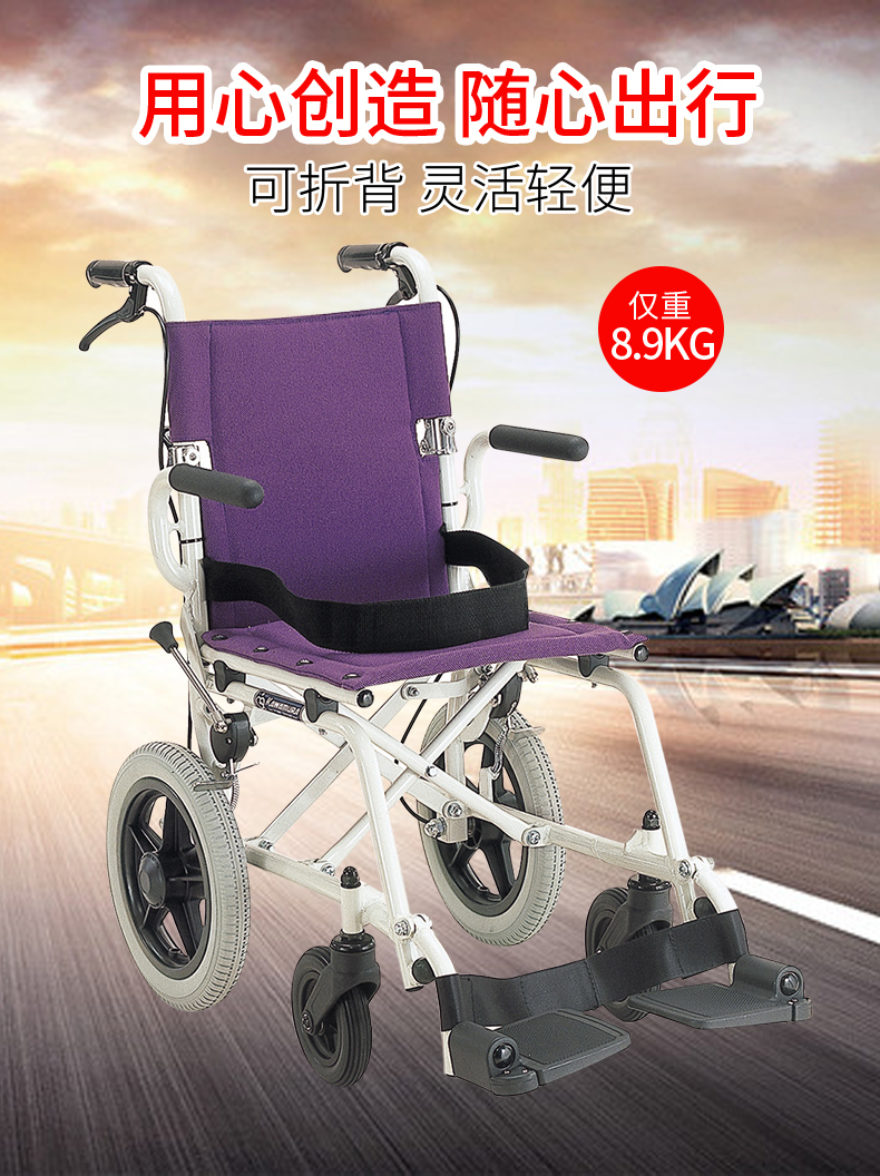 日本河村KA6飞机旅行轮椅铝合金轻便折叠超轻便携轮椅可上飞机