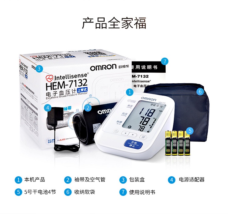 欧姆龙电子血压计HEM-7132家用上臂式血压仪全自动