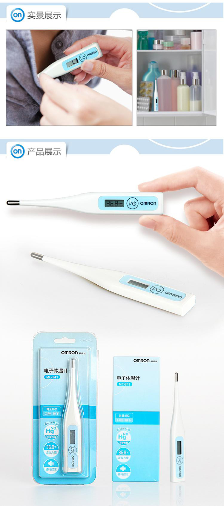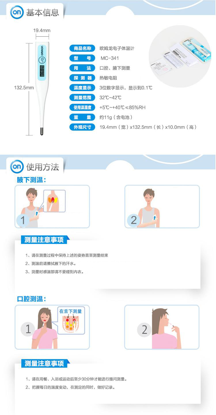 欧姆龙MC-341电子体温计儿童婴儿口腔腋下测量温度计家用体温表