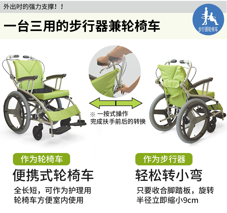 河村轮椅AY18-40折叠轻便老年人代步轮椅老人残疾人手推助行器
