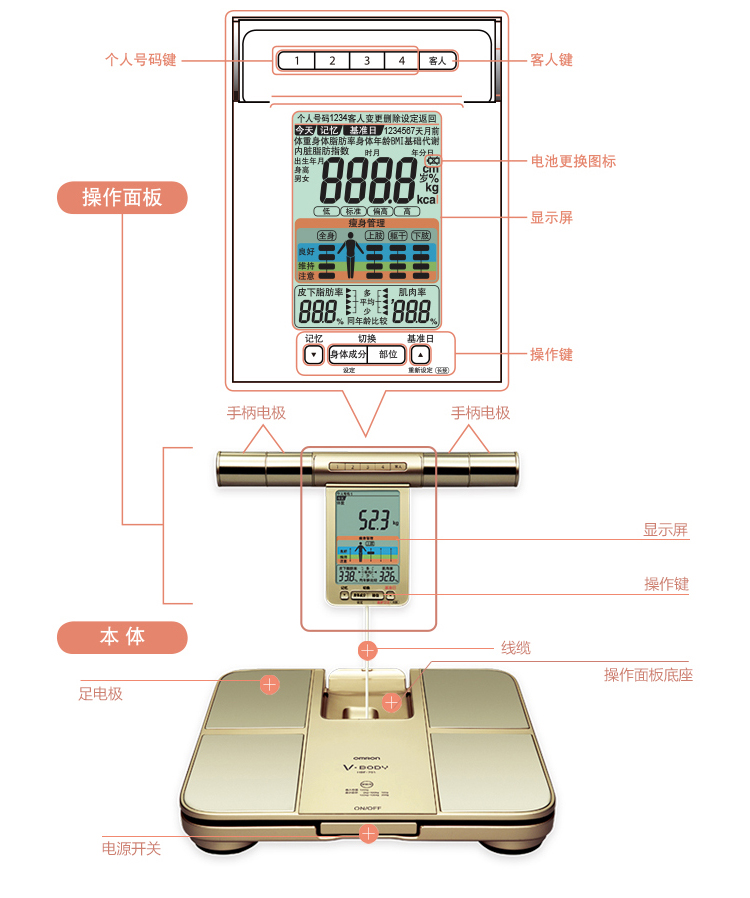 欧姆龙(OMRON)脂肪测量仪器HBF-701 脂肪秤 体脂测量仪
