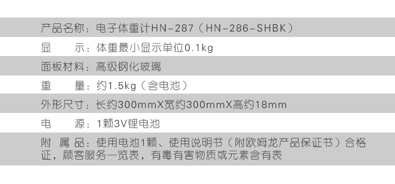 欧姆龙体重计HN-287家用电子体重秤成人儿童称体重健康秤