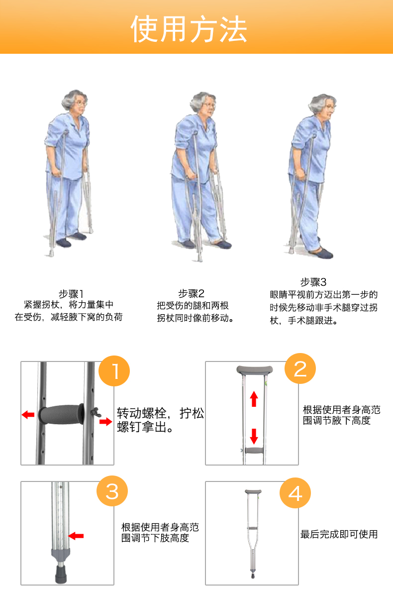 经立通腋下拐杖加厚铝合金防滑高低可调医用柺杖可伸缩腋拐助行器