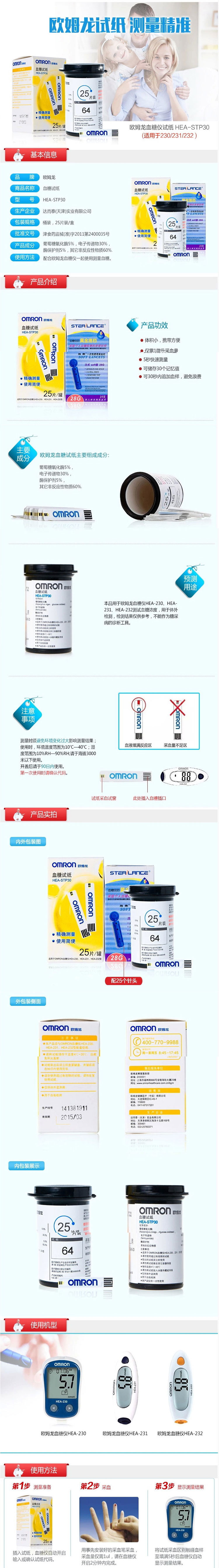 欧姆龙血糖仪试纸 HEA-STP30 适用于230/231/232 25片装试纸条