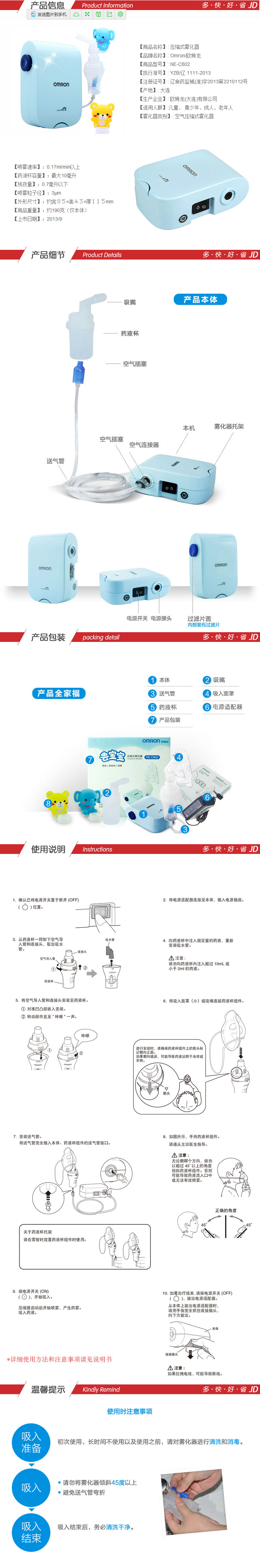 欧姆龙家用医用压缩式雾化器儿童专用化痰雾化吸入仪器NE-C802