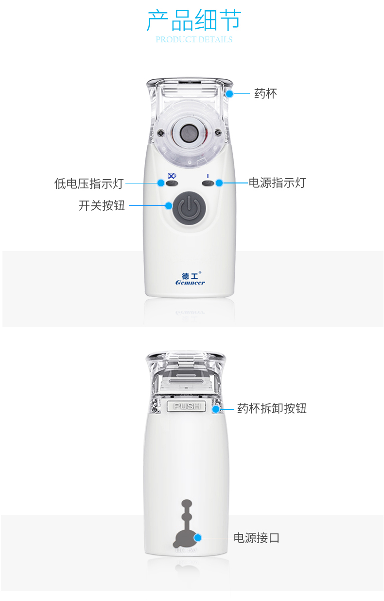 德工家用超声波手持雾化器成人儿童超静音便携式化痰止咳雾化机器