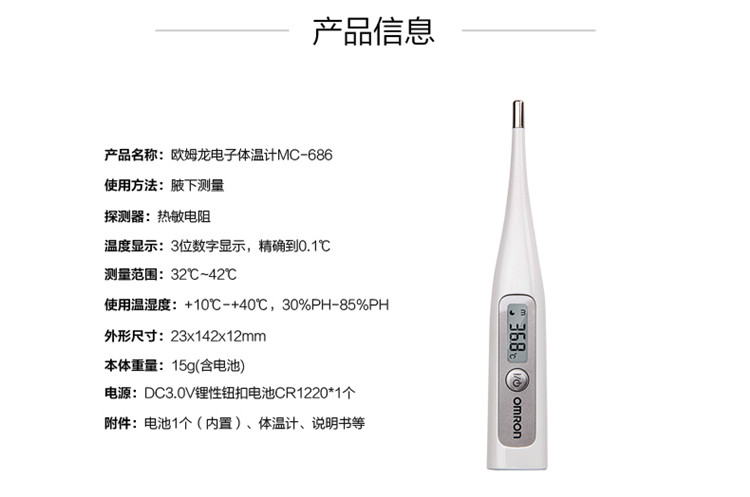 欧姆龙电子体温计MC-686宝宝婴儿成人家用腋下体温测试仪温度计