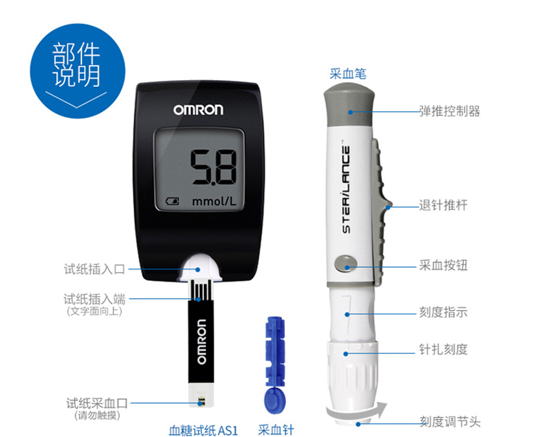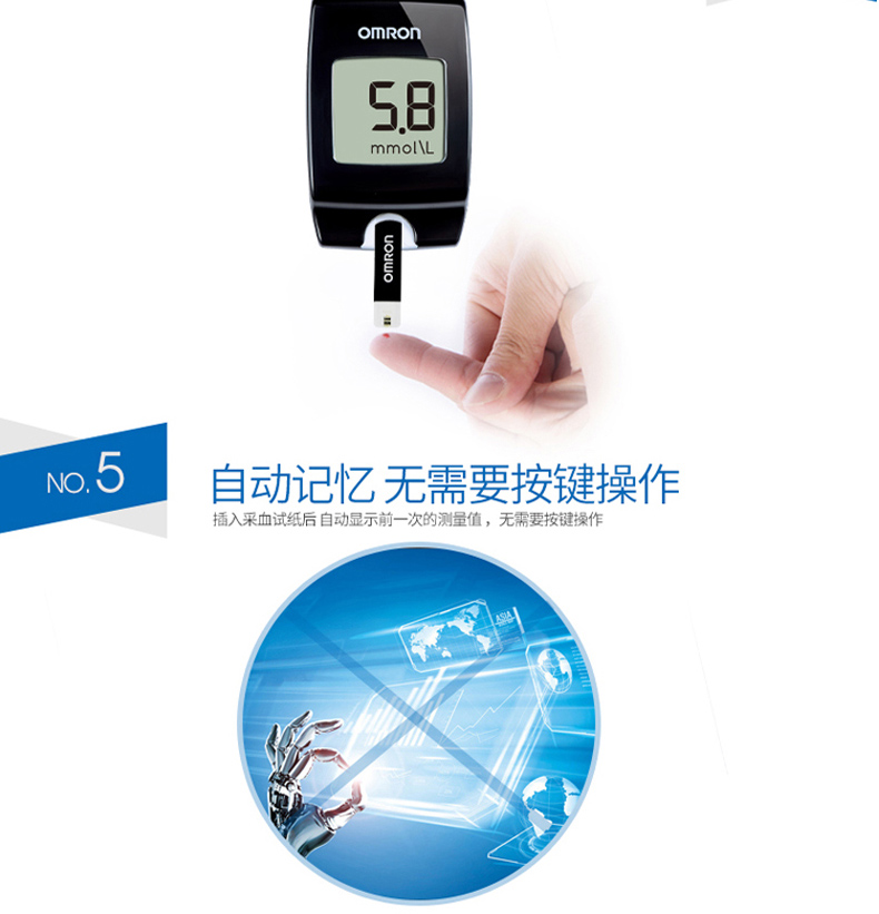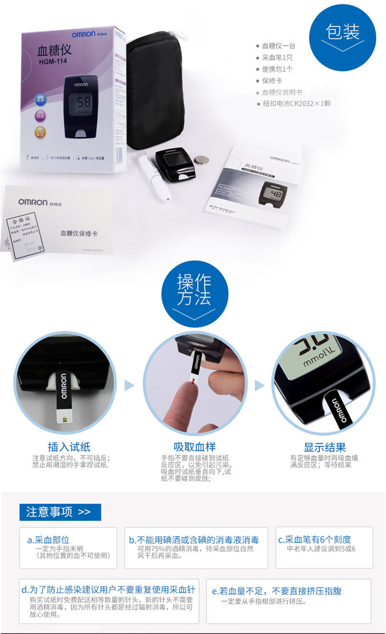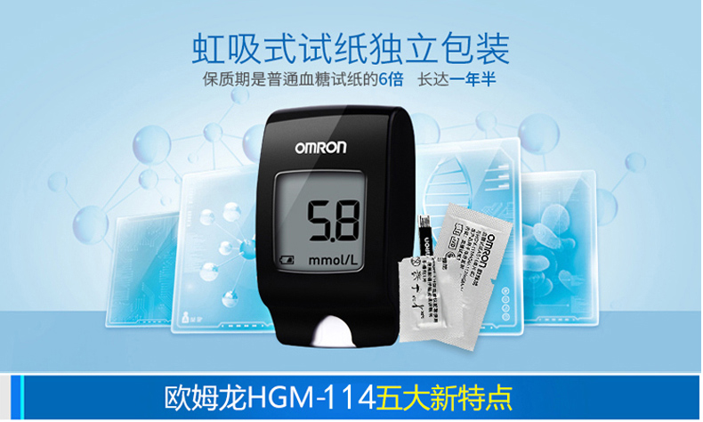 欧姆龙血糖仪HGM-114家用血糖试纸条全自动免调码血糖测试仪器