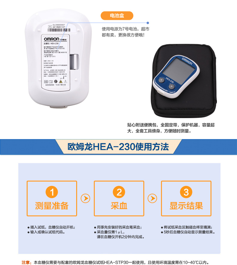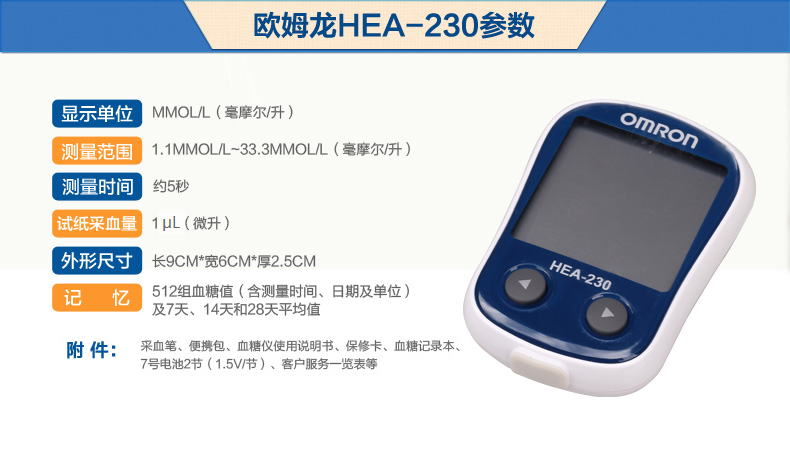 欧姆龙血糖仪HEA-230 血糖测试仪家用测量血糖仪器50片试纸
