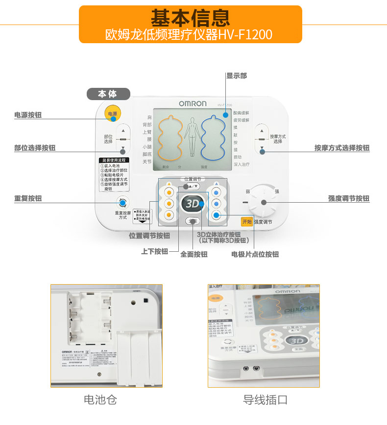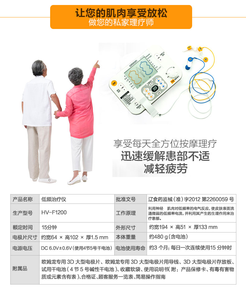 欧姆龙低频治疗仪器家用腰肌劳损理疗仪电子脉冲多功能按摩器1200