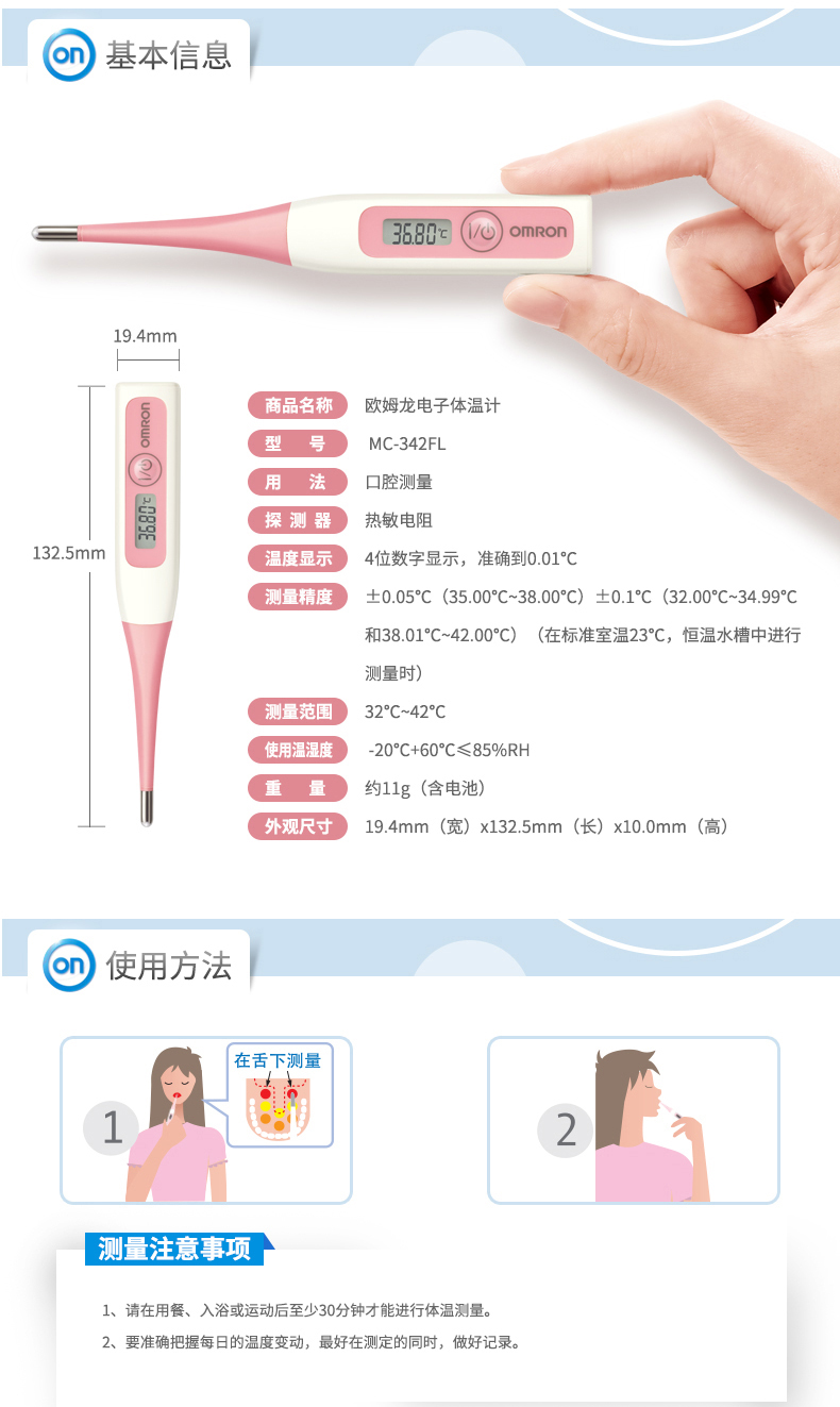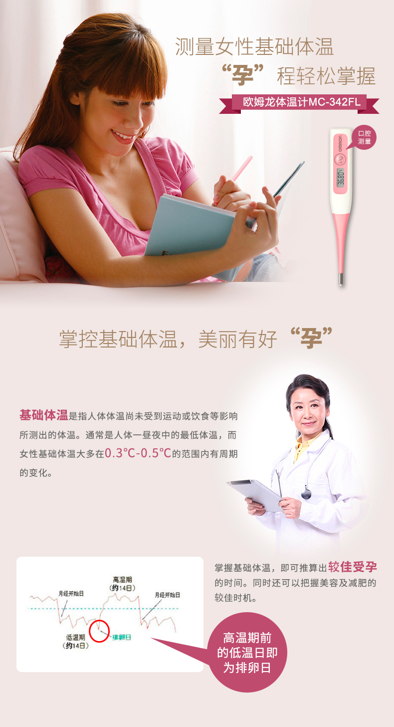 欧姆龙MC-342FL电子体温计 女性专用生理期测排卵 高精度家用软头