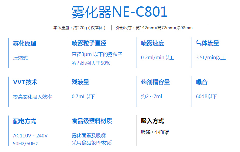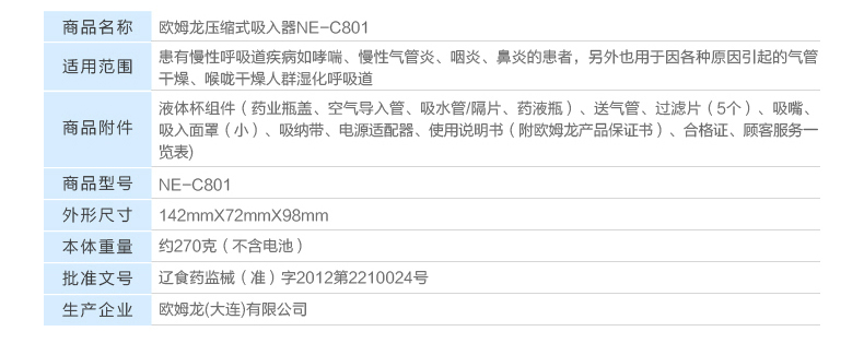 欧姆龙雾化器NE-C801 儿童家用雾化机 成人婴儿医用压缩式吸入器
