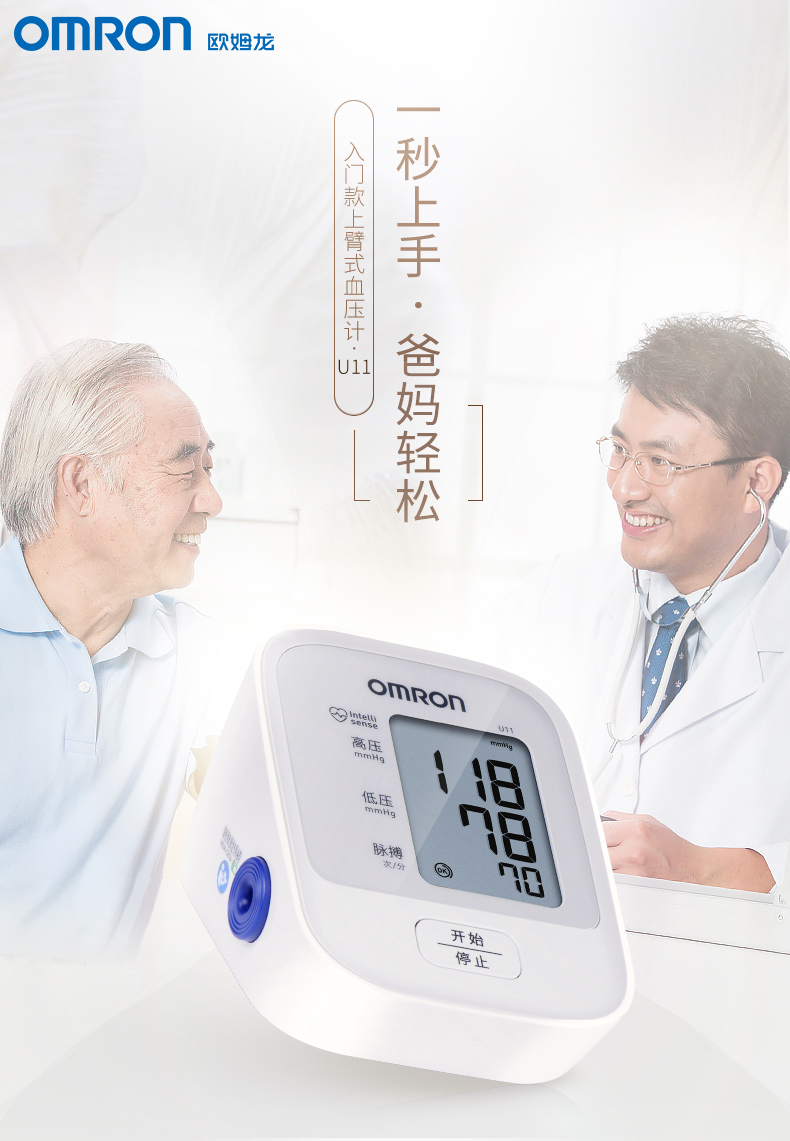 欧姆龙家用血压测量计上臂式全自动精准医用老人血压计U11血压仪