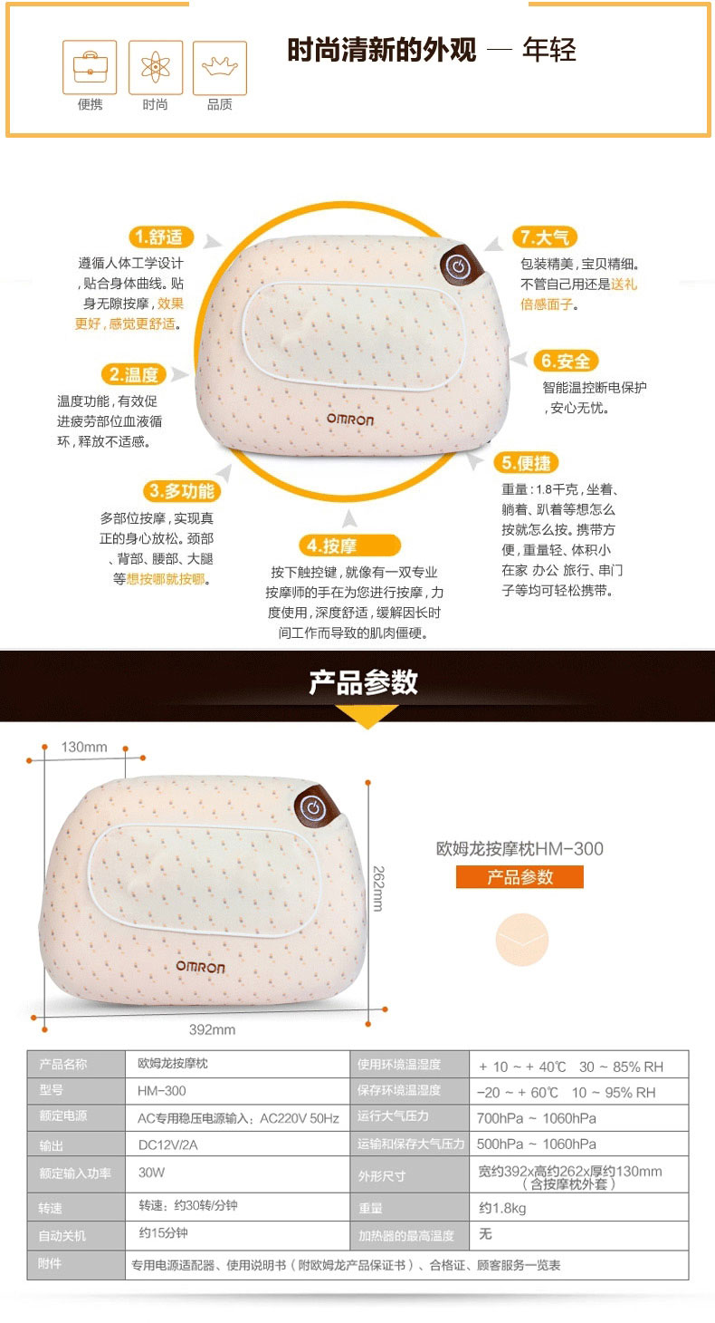 欧姆龙按摩枕HM-300指压式外套可拆洗头颈背腰腿部多功能按摩枕头