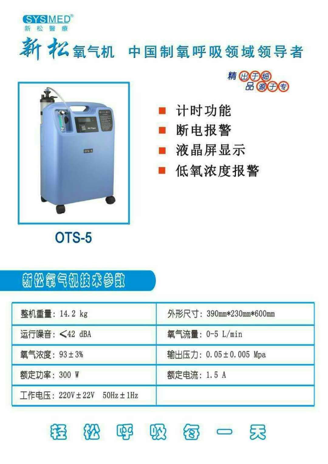 新松制氧机OTS-5家用老人吸氧机孕妇氧气机便携式医用制氧机5L机-标配